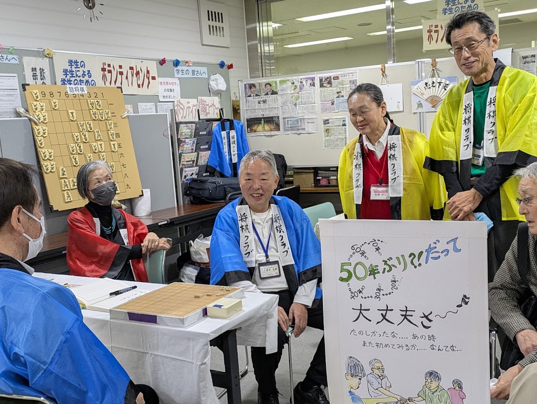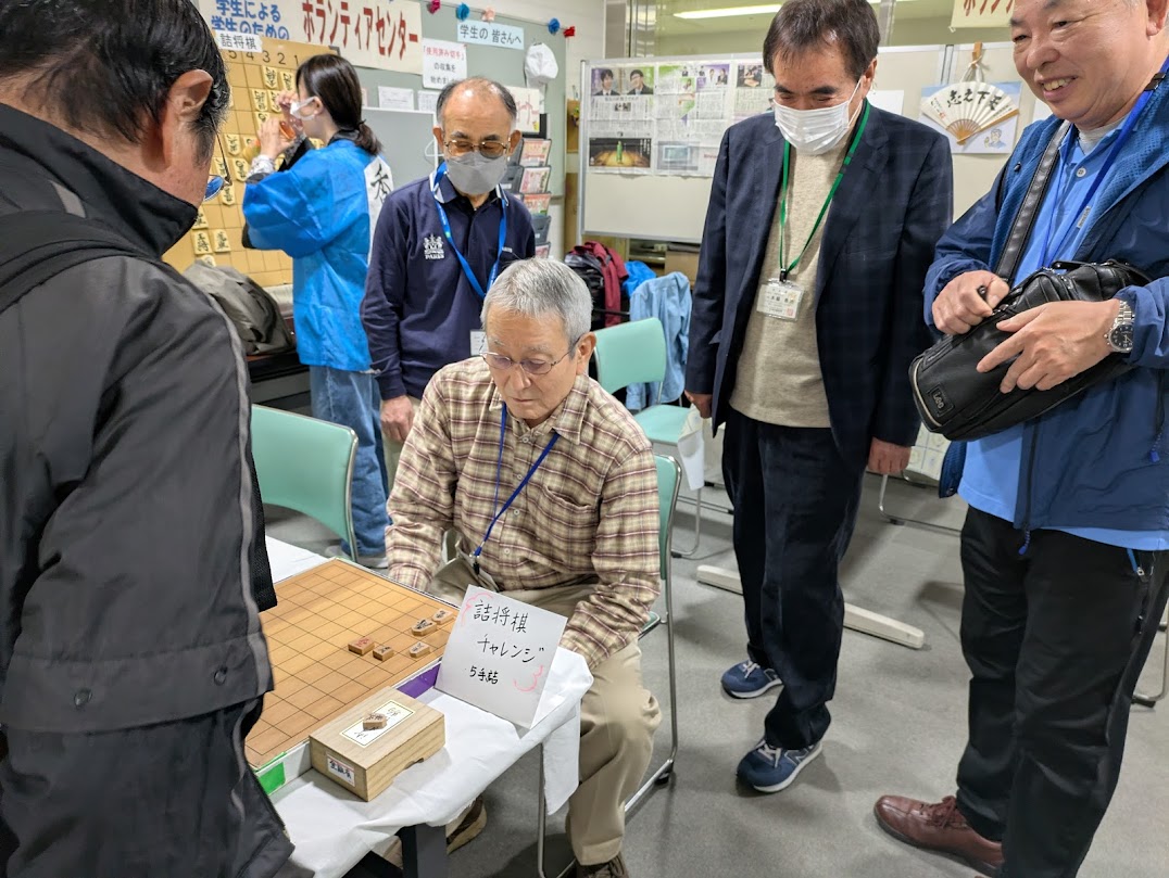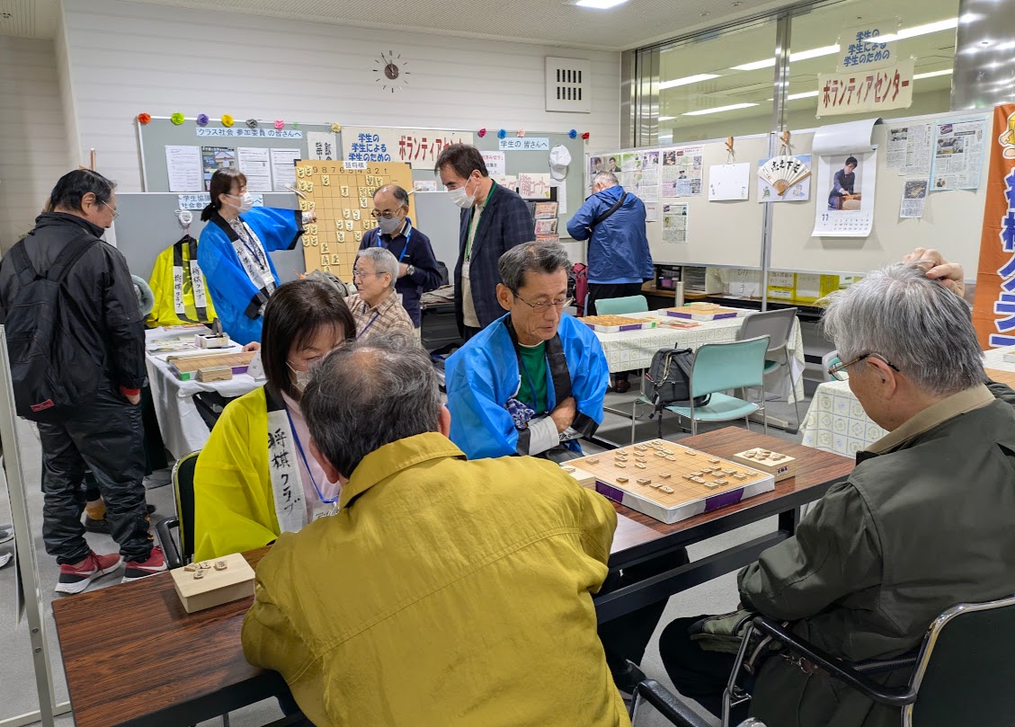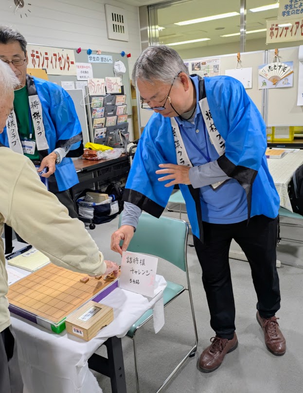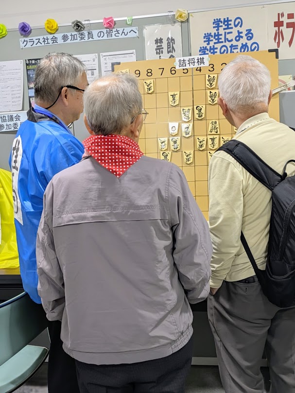 今年も天候に恵まれ,活気にあふれた鯱城学園文化祭が大盛況で幕を下ろしました。 初歩からの将棋クラブは,7階エレベーター前に展示ブースを構え,たくさんの方に立ち寄って頂きました。ありがとうございました。詰め将棋(1手詰めや5手詰め)の挑戦も楽しんでいただけたことと思います。