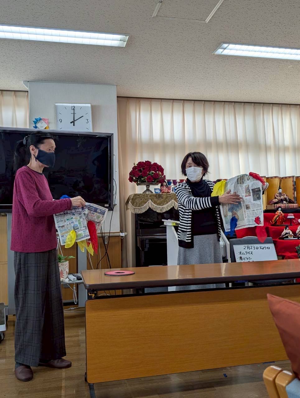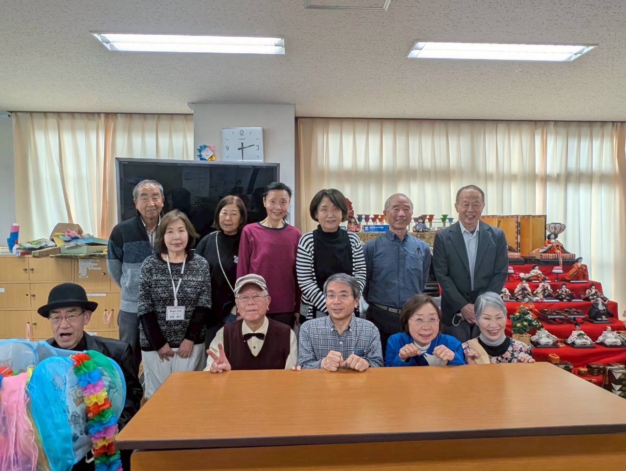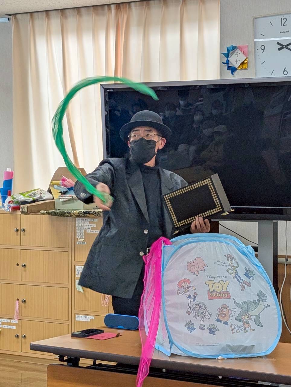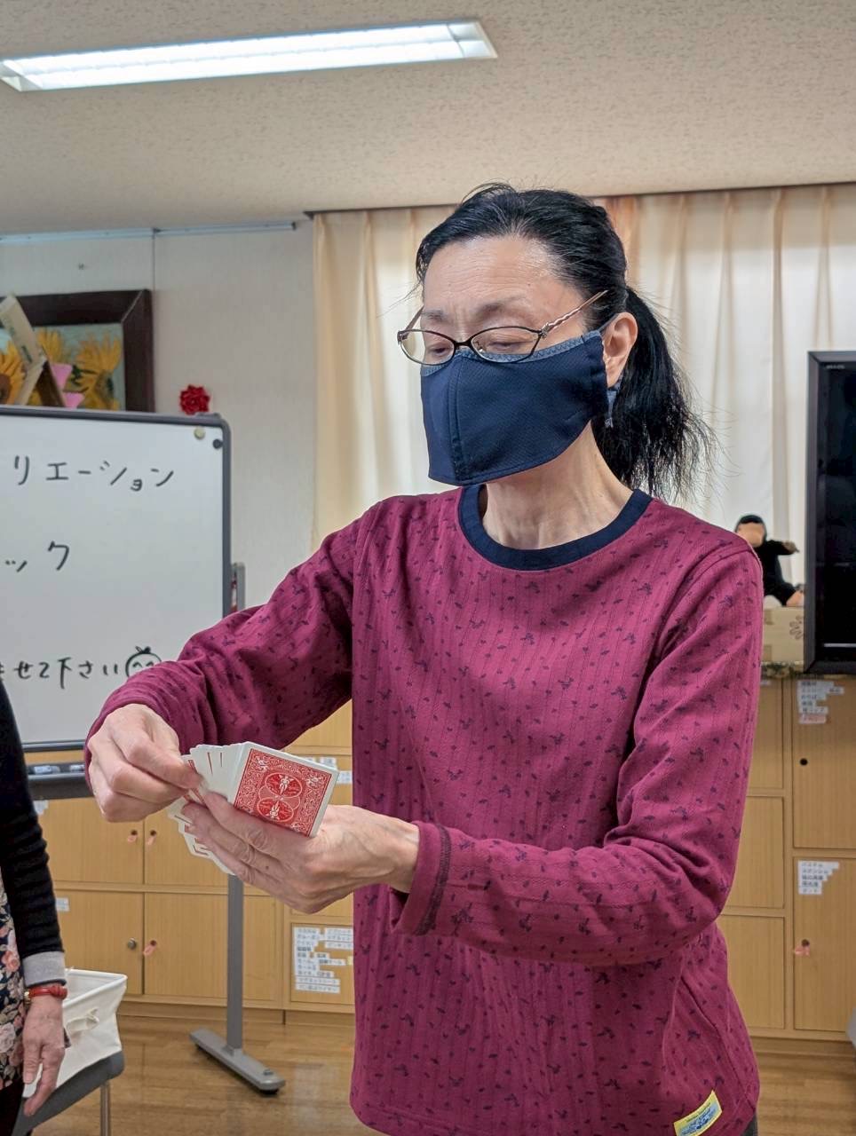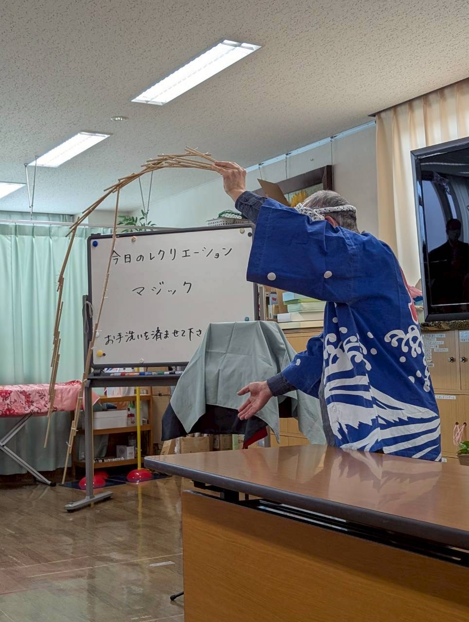 今年初めて千種ディサービス様でボランティア活動の報告です。 2年生5名、1年生6名、OB1名の12名で訪問しました。 2年生は在籍中の最後の活動となりました。 まずは4つのグループに分かれて入所者様4~5名の前でテーブルマジック、その後2年生が入所者全員の前でマジックを披露しました。最後はOBが圧巻のマジックで皆様に楽しんで頂きました。 このボランティア活動は多少の社会貢献と同時に、良い練習になりますので今後も積極的に行って行きたいと思います。