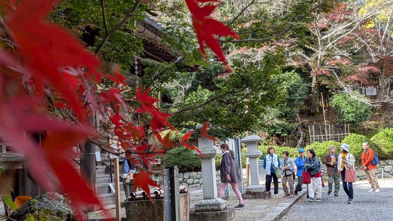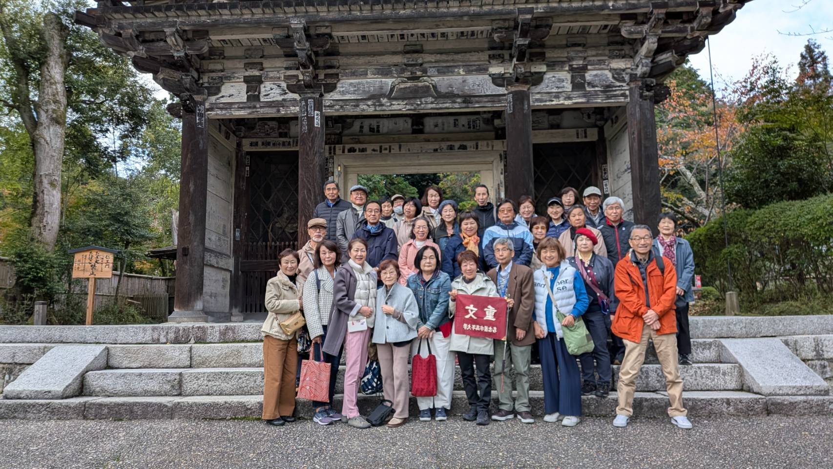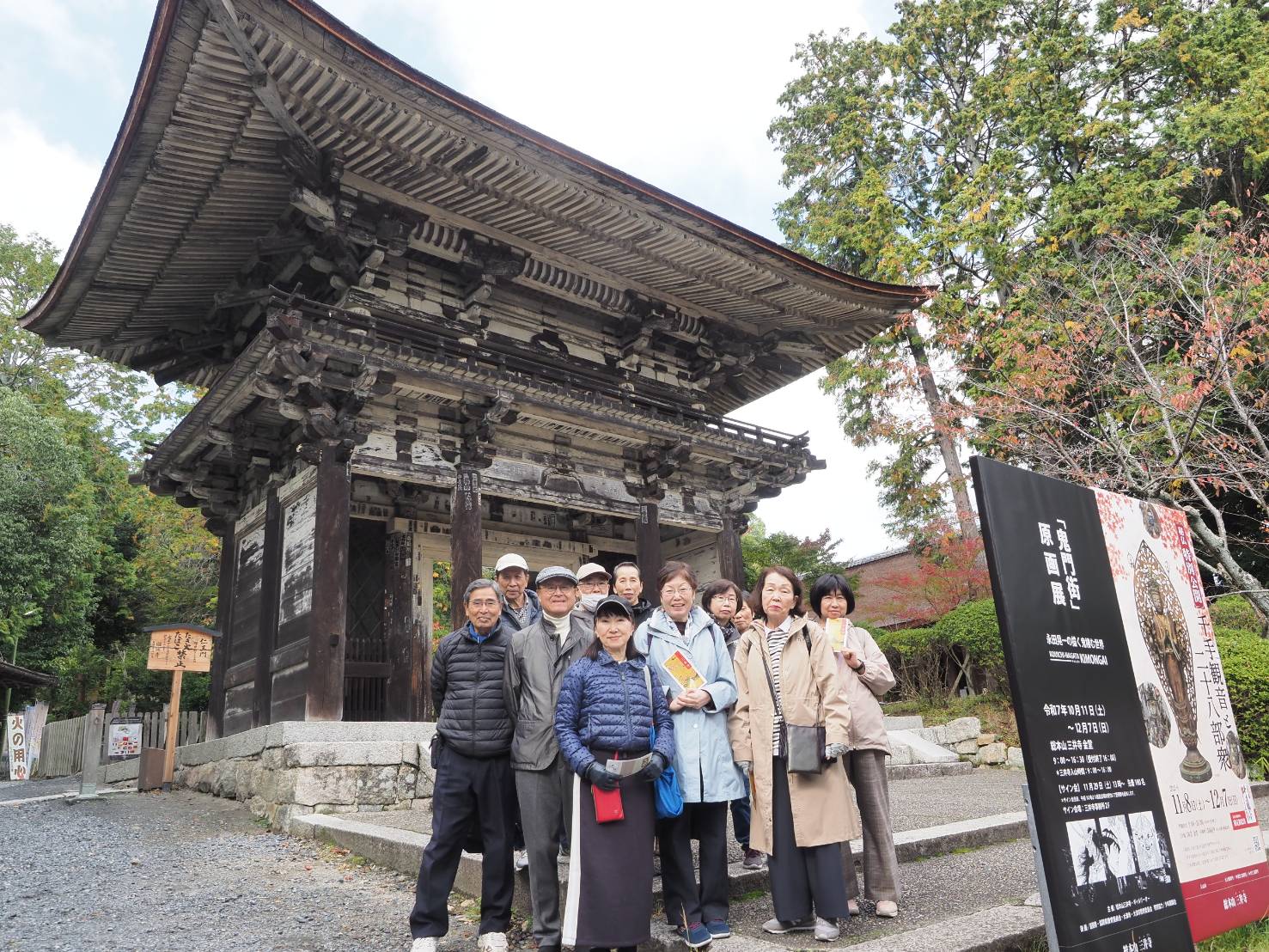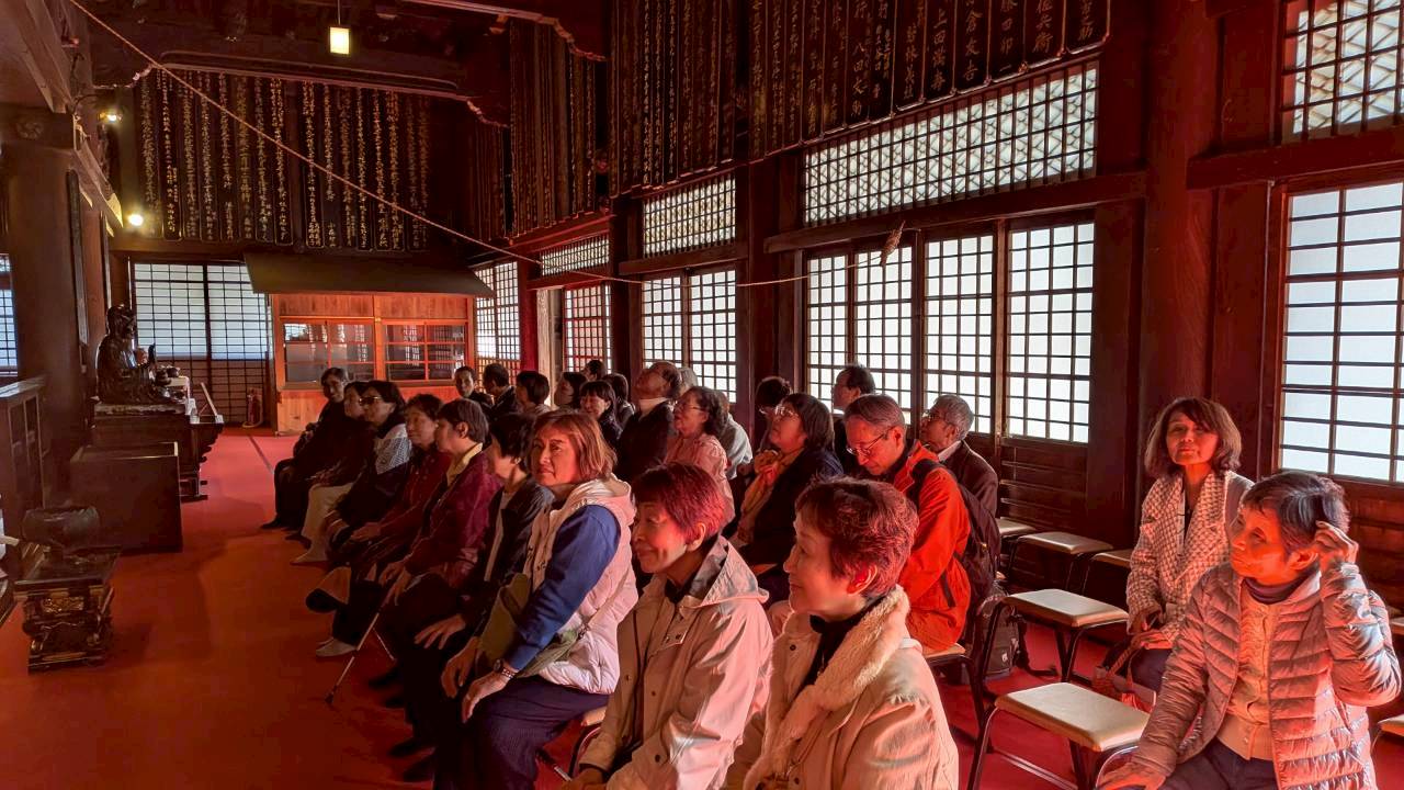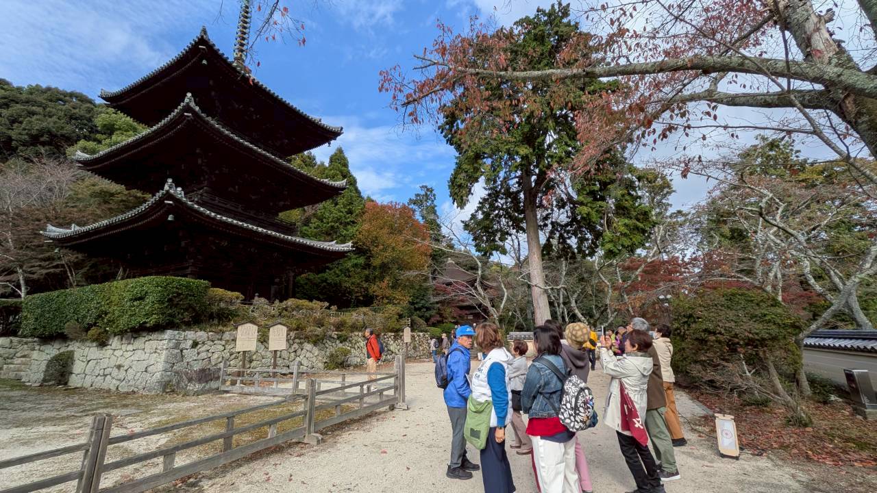 11月11日(火)滋賀県大津市琵琶湖湖畔の三井寺・西教寺へ出かけました。高速道路で約2時間、天台宗門総本山園城寺(三井寺)へ到着、早速3班に分かれての拝観スタートです。この寺は1300年の歴史を持ち国宝64点、重要文化財720点を有する文化財宝庫の寺院です。現地ガイドの案内で要所要所に纏わる説明を受けながら楽しくゆったりとした時間をすごしました。