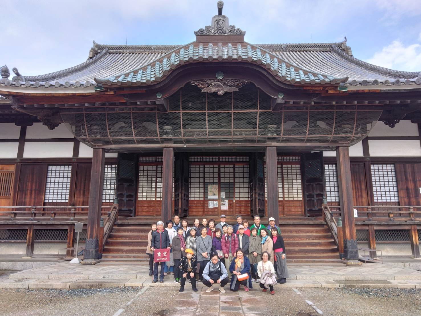 数日前の天気予報が雨のため、急遽見学ルートを一部変更しての近郊研修となりました。 先ずは、多治見市にある名刹・永保寺を見学した。幸い心配した雨も降らず、ボランティアに従って、境内に足を踏み入れると、池泉回遊式庭園を囲むように色づいた紅葉が広がり、素晴らしく癒やしのひとときでした。国宝の開山堂、観音堂をはじめ、自然の美しさは禅寺ならではの静寂が調和し、古くから大切にしてきた自然観や美意識を感じ取ることが出来ました。見学後に大粒の雨が・・・降られず良かった!