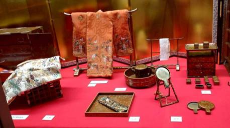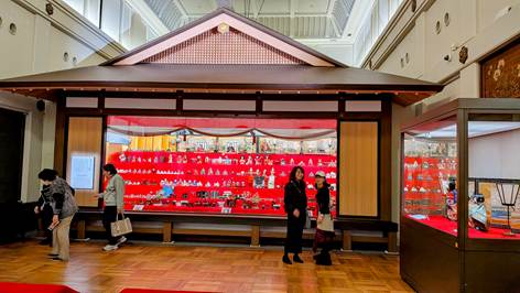 尾張徳川家のひな祭り展示内容は、三世代にわたる雛壇飾りや内裏雛飾り、犬張子、牡丹唐草蒔絵雛道具、菊折枝蒔絵の雛道具と婚礼調度など数々の道具が展示され、当時の豪華絢爛な様相が目に浮かぶ様でした。