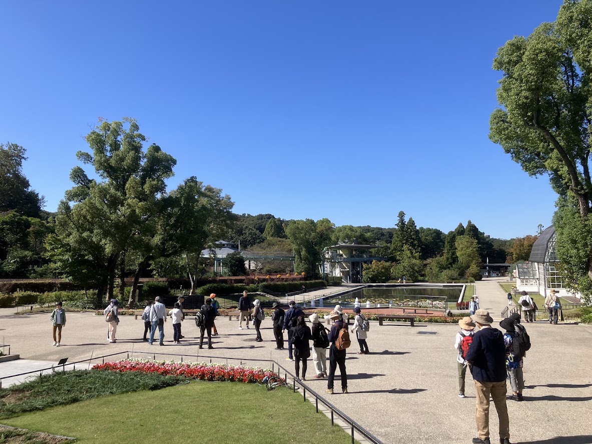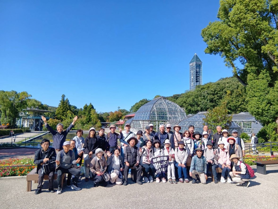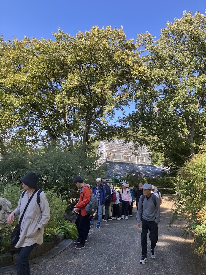 ウオーキング経路 ①植物園星ヶ丘門→②お花畑(自由散策約30分)→③万葉の散歩道→④温室(重要文化財)→⑤植物会館(休憩)→⑥植物園出口にて再入園チケット入手⑦動物園再入園後解散(各自動物園内自由見学)