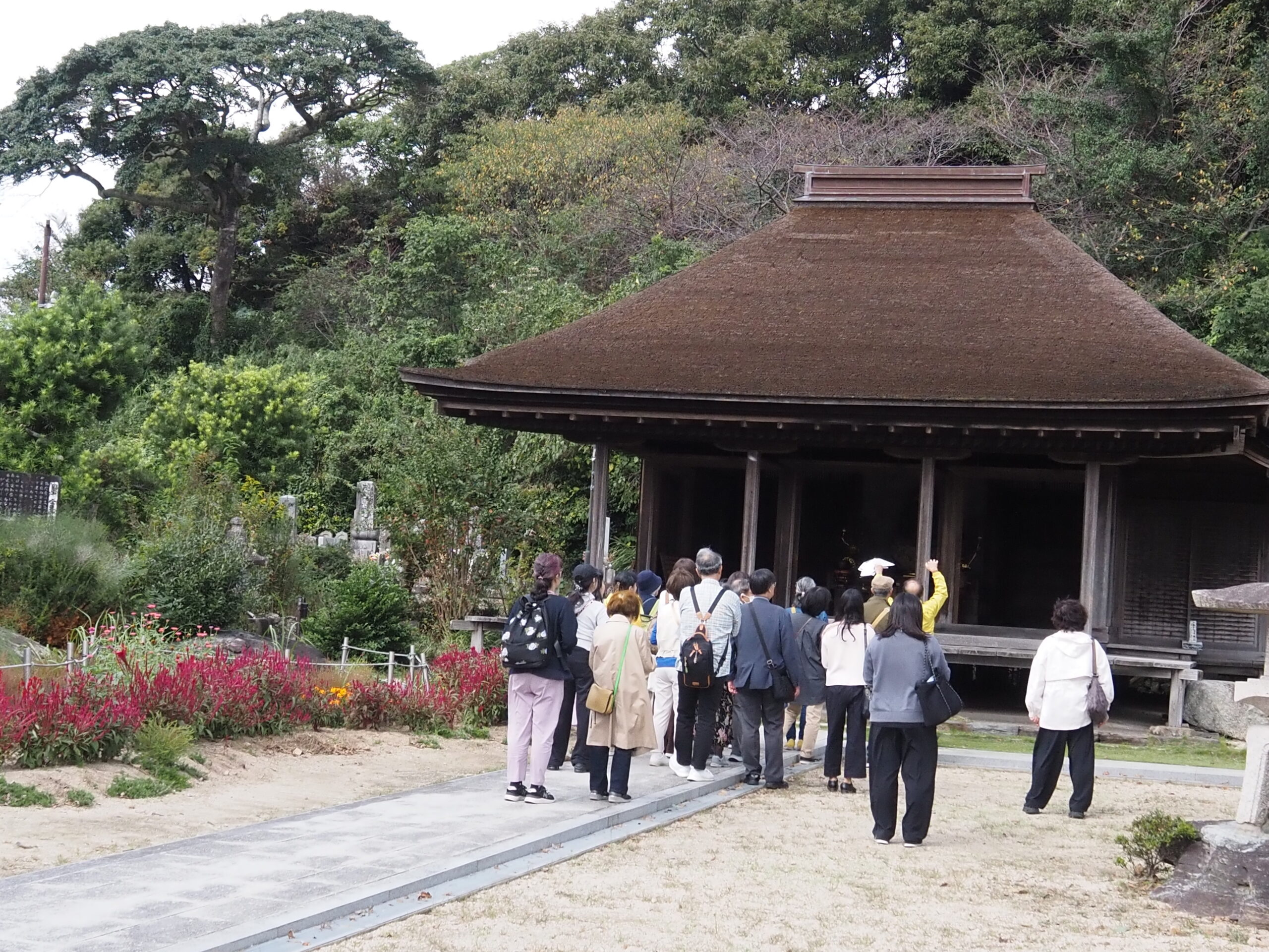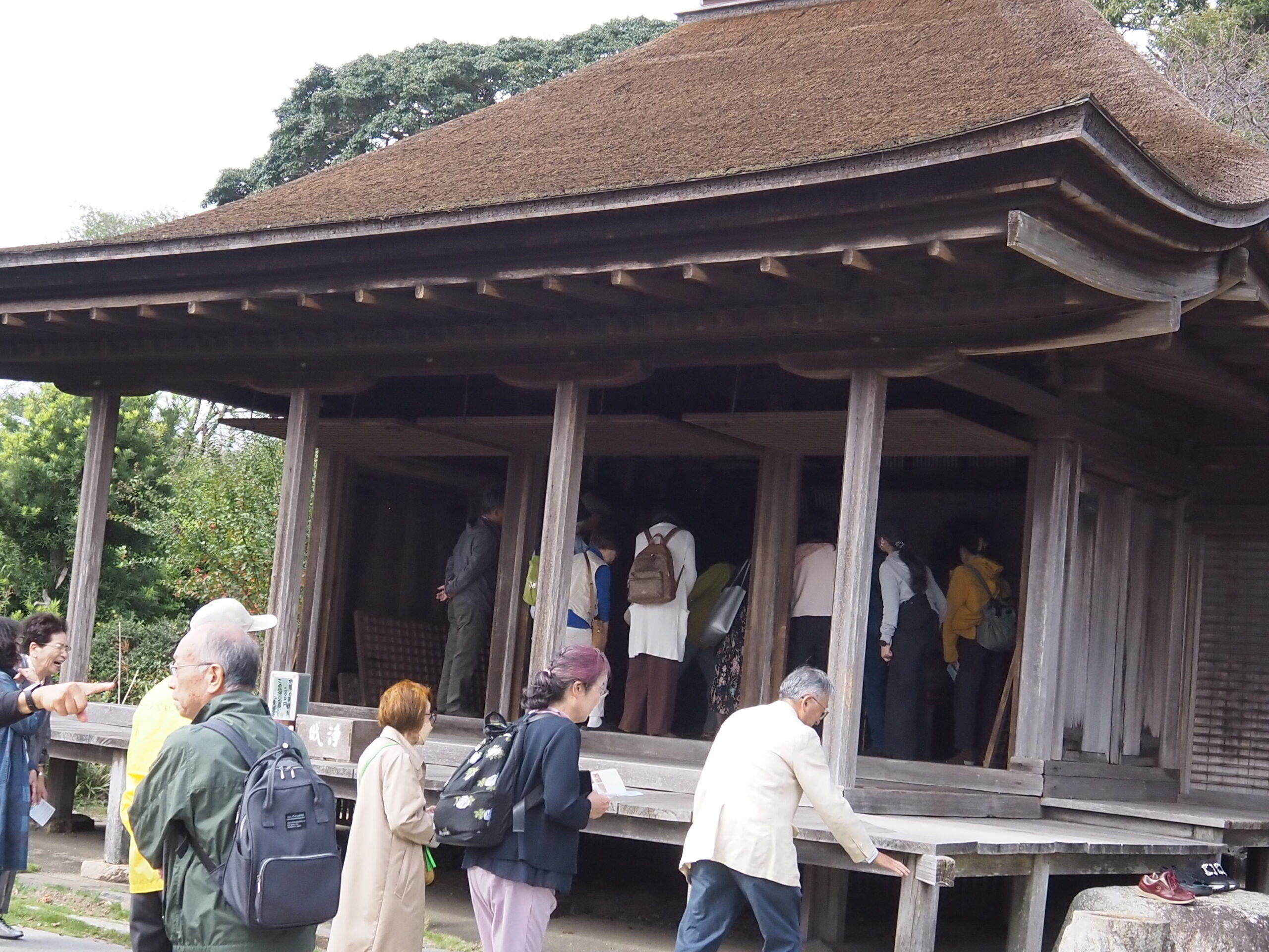 つぎに、西尾吉良町にある「国宝金蓮寺弥陀堂」を見学しました。優美な曲線を描くかやぶきの屋根が静かな農村風景に溶け込んでいました。