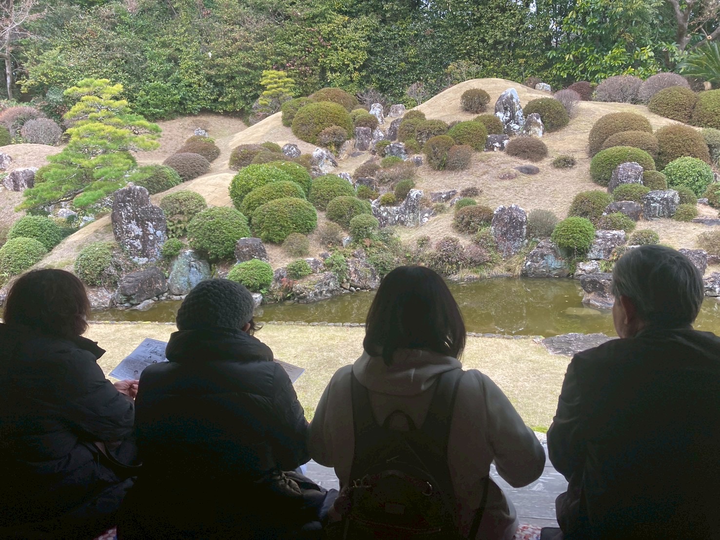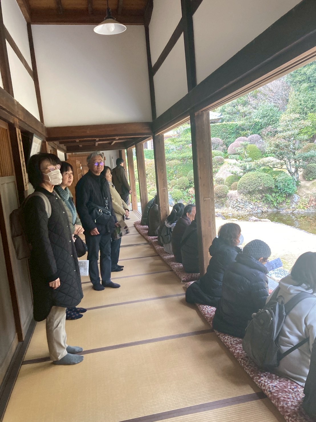 浜松方面へのバス旅行を実施しました。最初に訪れたのは、井伊家ゆかりの名刹・龍潭寺です。静かな庭園と歴史ある伽藍を前に、寺院の成り立ちや井伊家との関係について説明を受け、地域史と大名文化のつながりを実感していました。特に小堀遠州作と伝わる庭園では、四季の移ろいを映す景観に見入る姿が多く見られました。