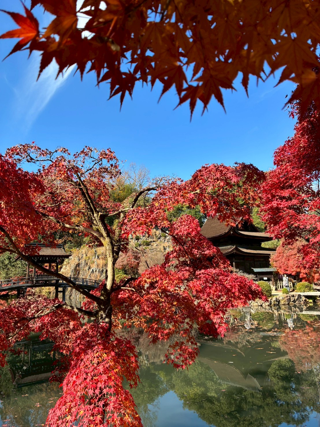 11月27日、23名の参加者で、岐阜県多治見市の虎渓山永保寺散策に行って来ました。JR名古屋駅に8時20分集合し、8時35分の中津川行に乗車し9時17分JR多治見駅に到着、9時30分発の東鉄バスに乗車9時38分に虎渓山に到着しました。2班に分かれてガイドさんの説明を聞きながら散策しました。臨済宗南禅寺派の虎渓山永保寺は1313年に夢窓国師により開創され、仏徳禅師を開山とします。この地は虎渓三笑の話で有名な中国廬山の虎渓にあやかって虎渓山と名づけられました。現存する開山堂と観音堂は国宝に指定され、両堂には南北朝から室町初期における歴代住持や檀那の位牌が納められ、開山堂には開祖夢窓国師と開山仏徳禅師の木像が安置されています。絹本着色千手観音像(重要文化財)のほか、夢窓や仏徳の墨跡など数多くの文化財を所蔵し、観音堂前の庭園は臥竜池と称する池に反り橋の無際橋が架かり、浄土教的庭園の様式を感じさせる名庭で、国の名勝に指定され、建築・庭園・墨跡など禅の美術で注目される禅寺です。また近世末期には白隠慧鶴の一系に属する春応禅悦(霊機神応禅師)により僧堂が開かれ、雲水が禅の修行に励む臨済宗南禅寺派の専門道場(虎渓僧堂)を併設しています。