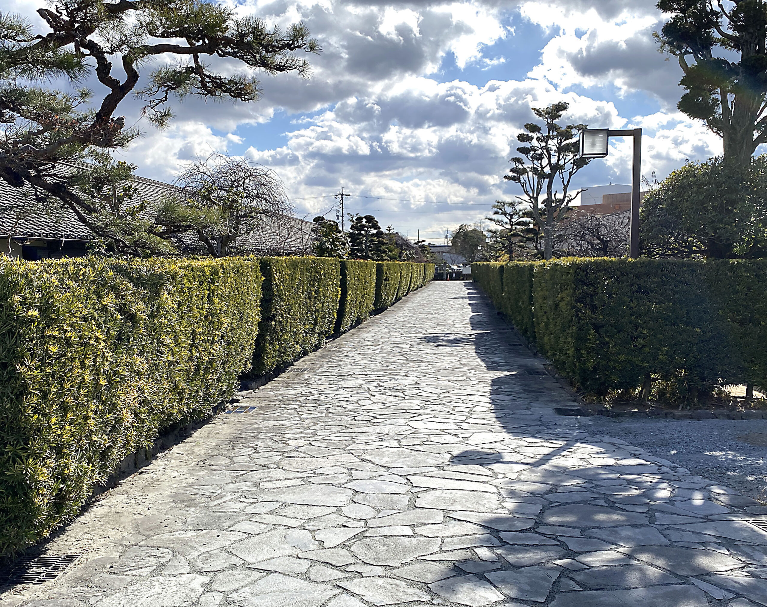 その後「本居宣長記念館」を訪れ学芸員からの説明を伺った後に館内を見学し、さらに宣長が12歳のときから亡くなる72歳まで住み、明治42年に現在地に移転した「本居宣長旧宅」を見学。最後に松坂城裏門跡を出た先の石畳が両側にある武家屋敷「御城番屋敷」を見学。ここは現在も実際に住んでいる人もいて、1軒だけ見学用に開放されています。そこで集合写真を撮影し解散。豪商の町並みから城址、そして当時の武家屋敷がそのまま残るなど、江戸時代 の雰囲気が多く残る松坂の散策を存分に味わいました。
