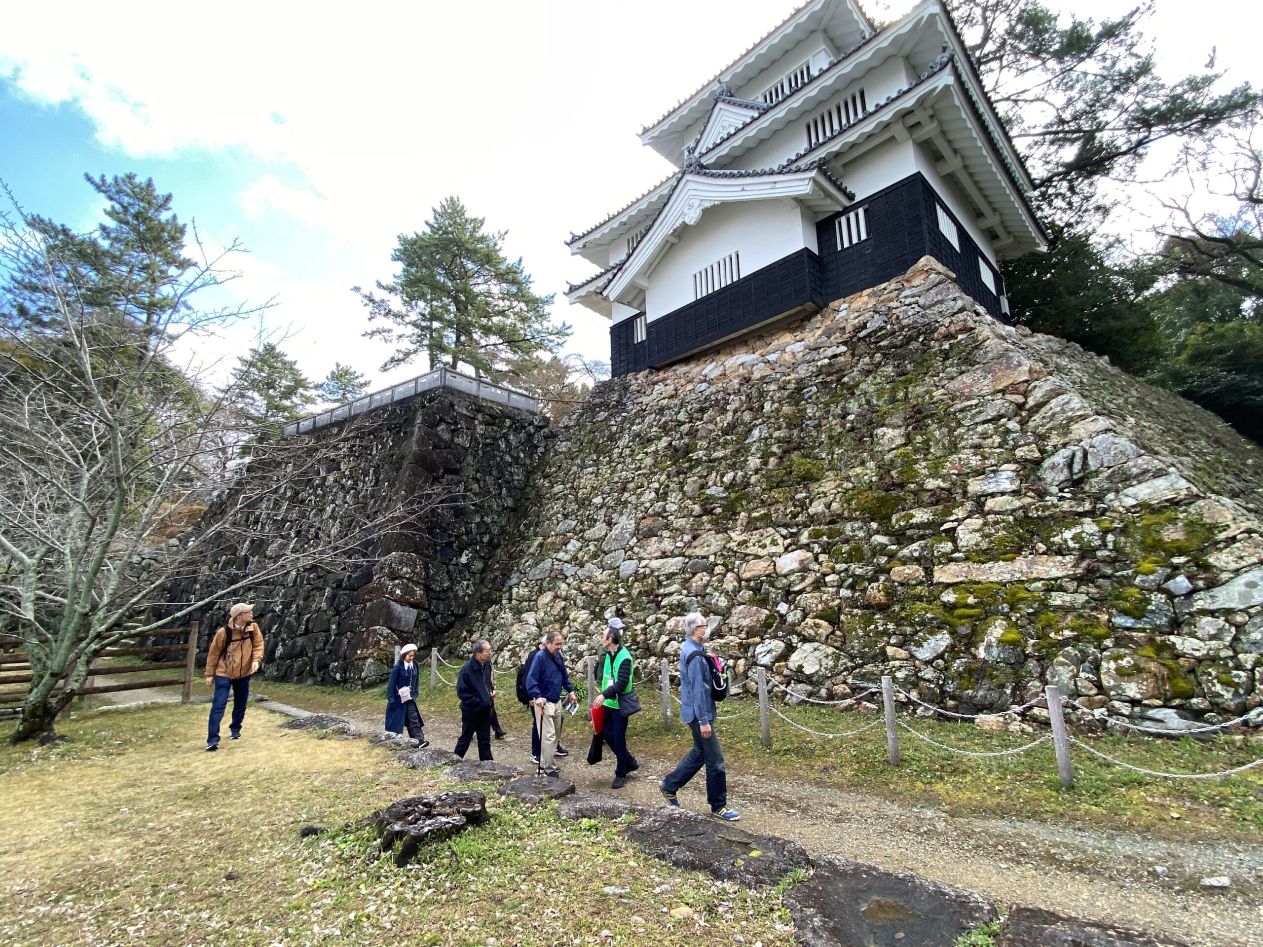 次に、すぐ近くにある吉田城に向かいました。吉田城は1496年頃に築かれた今橋城が前身、当地の武将たちによる激しい争奪戦が繰り広げられたのち、松平(徳川)家康は酒井忠次を城代に置きました。1590 年豊臣秀吉の命令で家康が関東に移ると、池田照政(輝政)が吉田城主となりました。その後、池田照政は関ケ原合戦の功績により姫路に加増移封、姫路城を現在残る姿に大規模修築したことで有名で、ボランティアガイドさんの説明では、この吉田城での経験があったからこそ、あの姫路城の修築が叶ったとのことです。石垣や土塁など多くの遺構が残っており、1954年に復興された鉄櫓(くろがねやぐら)などを見学して巡りました。そして、昼食へ。文政年間創業、江戸中期からおよそ200年続き、現在も「旧東海道」沿いにある味噌田楽の老舗である「きく宗」で、名物の菜飯と田楽を美味しくいただきました。