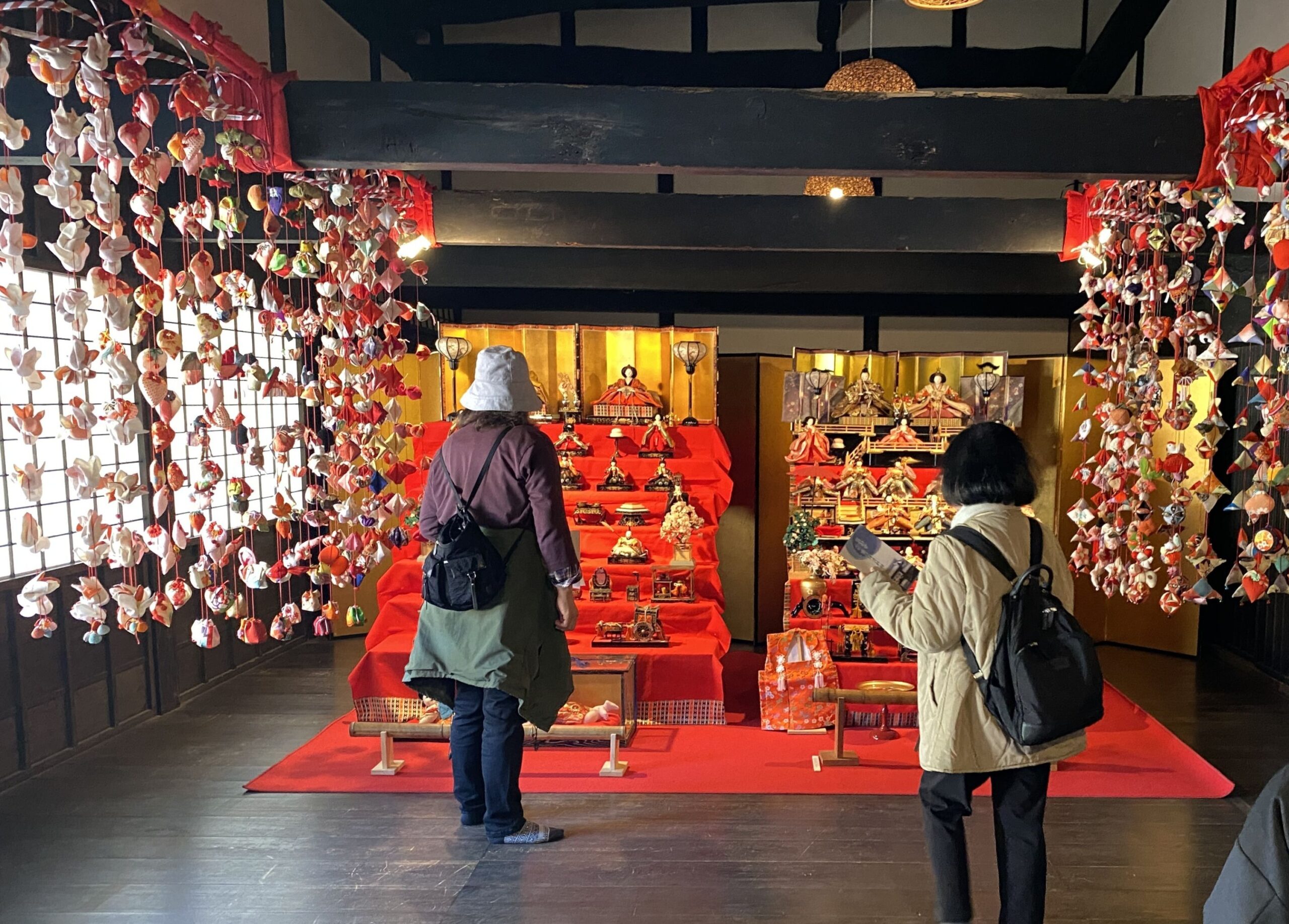 「きく宗」でお腹を満たした後、豊橋駅から、JR東海道線で二川に向かい「二川宿本陣資料館」に到着。二川宿は、東海道五十三次の33番目の宿場で、愛知県の最東端にあり、私たちは最西端の宮宿から訪れていると学芸員の方から説明され「なるほど」と感心してしまいました。ちょうど「ひなまつり」イベントが開催中で、多くの「ひな人形」と「つるし雛」が飾られた本陣の各部屋を見学。最後に、豊橋市内では数少ない江戸時代の建造物である商家「駒屋」を見学。当日は、朝は曇り模様でしたが、途中から晴れ、満開の紅白の梅や煌びやかなひな人形など、春を感じることのできる散策となりました。