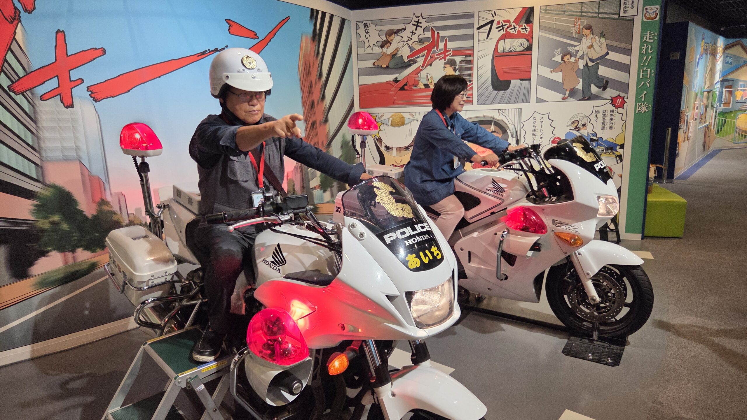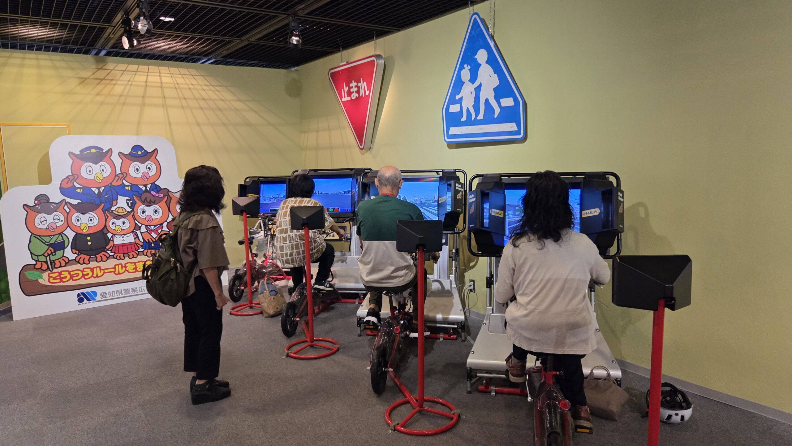 見学者用の「このはずく広場」は、白バイにまたがっての写真撮影や自転車運転シミュレーション等ができる人気スポットで、盛り上がりました。最後に会議室で、愛知県警の業務についてのビデオのあと、「サイバーポリスゲーム」でサイバー犯罪に対する対応策をすごろく形式で楽しく学ぶことができました。
