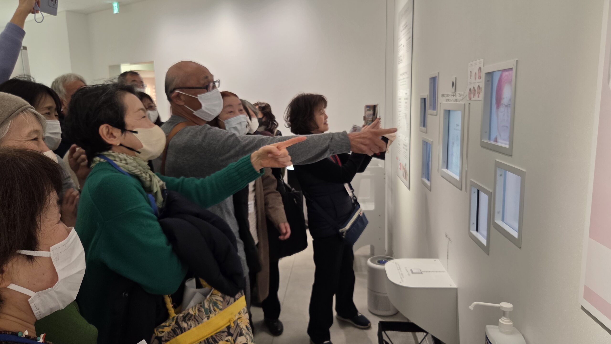 スタッフからの丁寧な説明によって、古代より美しい黒髪を追い求めるための染料や工夫、白髪染めの長い歴史を学ぶと同時に、体験ゾーンでは、毛髪診断や自分に似合う髪型とヘアカラーをバーチャル体験でき、楽しく盛り上がりました。