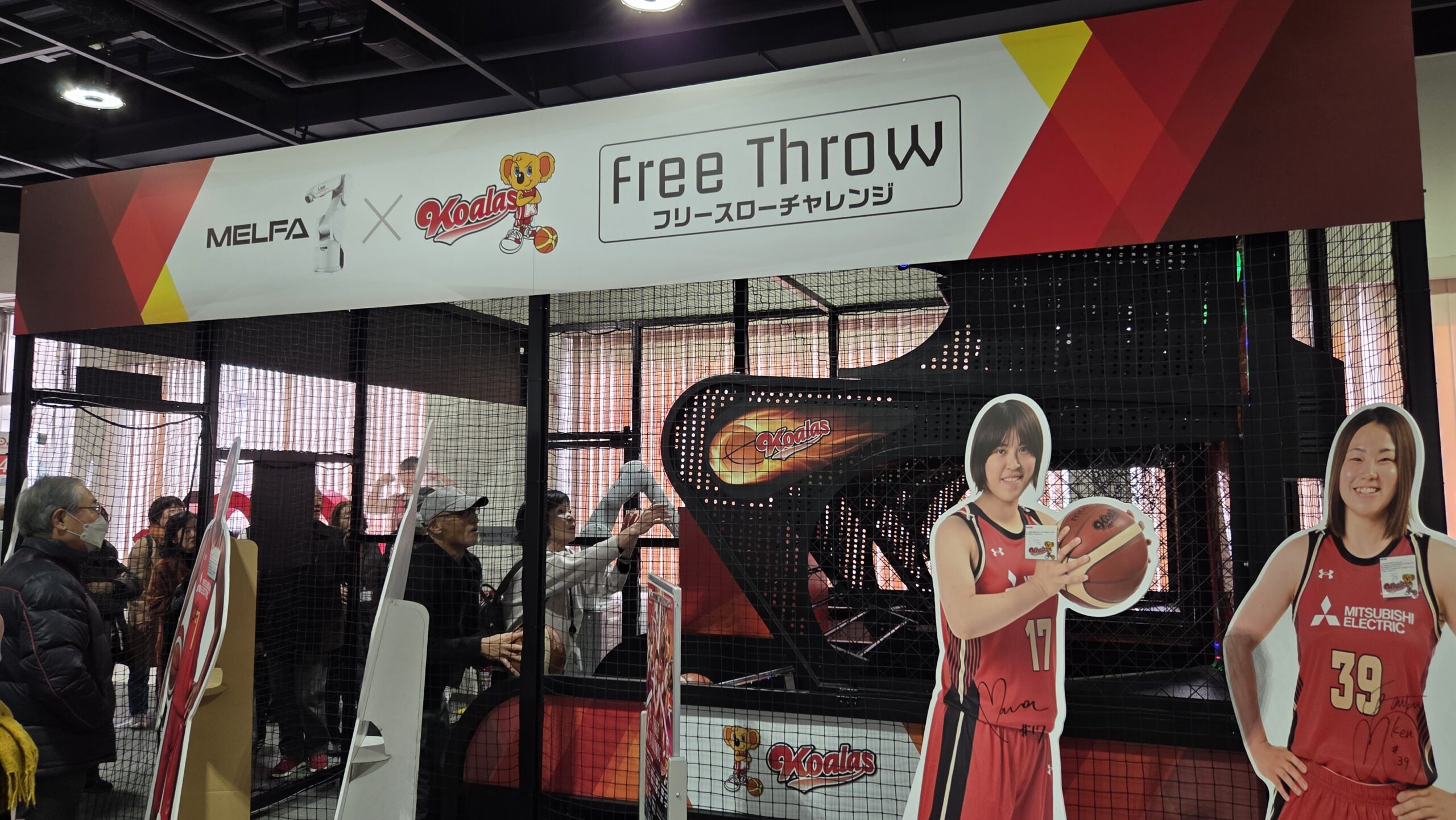 最後に、三菱電機の女子バスケットボール部であるコアラーズ紹介コーナーで、フリースローチャレンジでロボットと対戦も行いました