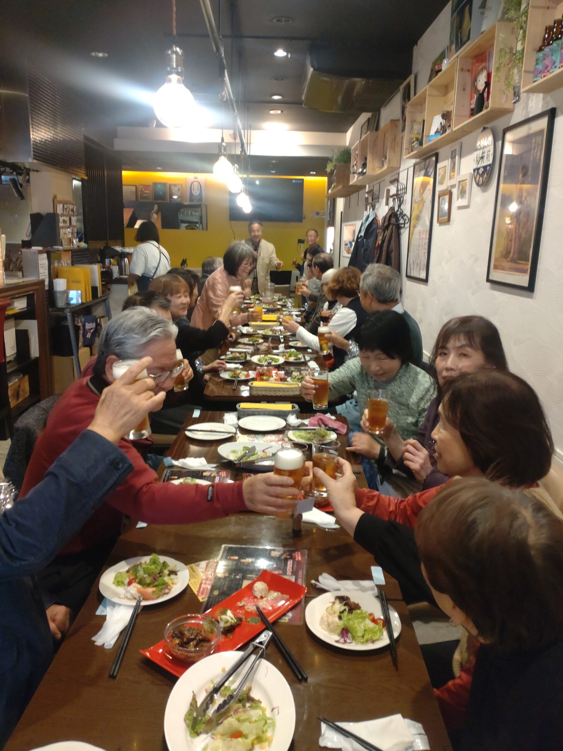 文化祭後の最初の授業(11/13)では、全員が英語劇について感想を言い合いました。長期間の練習の結果が11/8に見事に花開いて、メンバーの連帯感、親密度がますます深まった感じがしました。授業後はイタリアンレストランのゴリアテでお疲れ会を開きました(写真2枚目)。