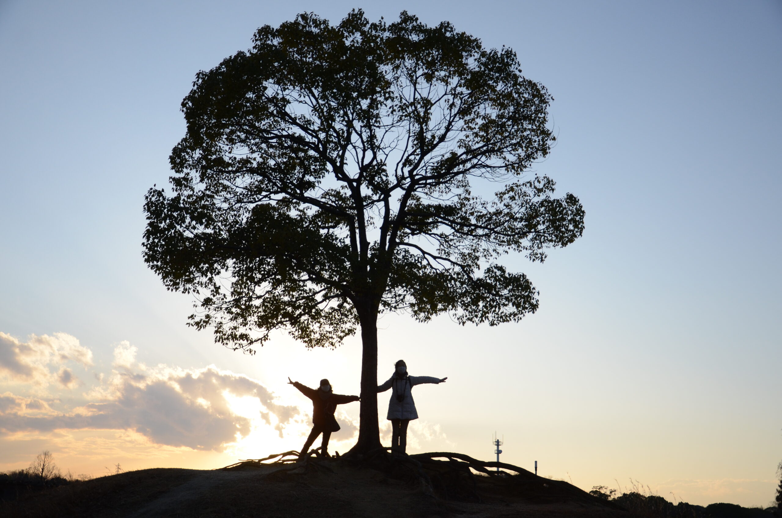 1月13日(火)大高緑地公園にある通称ペレーの木を目指して左京山駅に集合しました。天気に恵まれ最高の夕日を背景にできました。寒いかと思われましたが気温もあまり下がらず暖かい撮影会でラッキーでした。日頃の心掛けのせいだと全員自己満足していました。