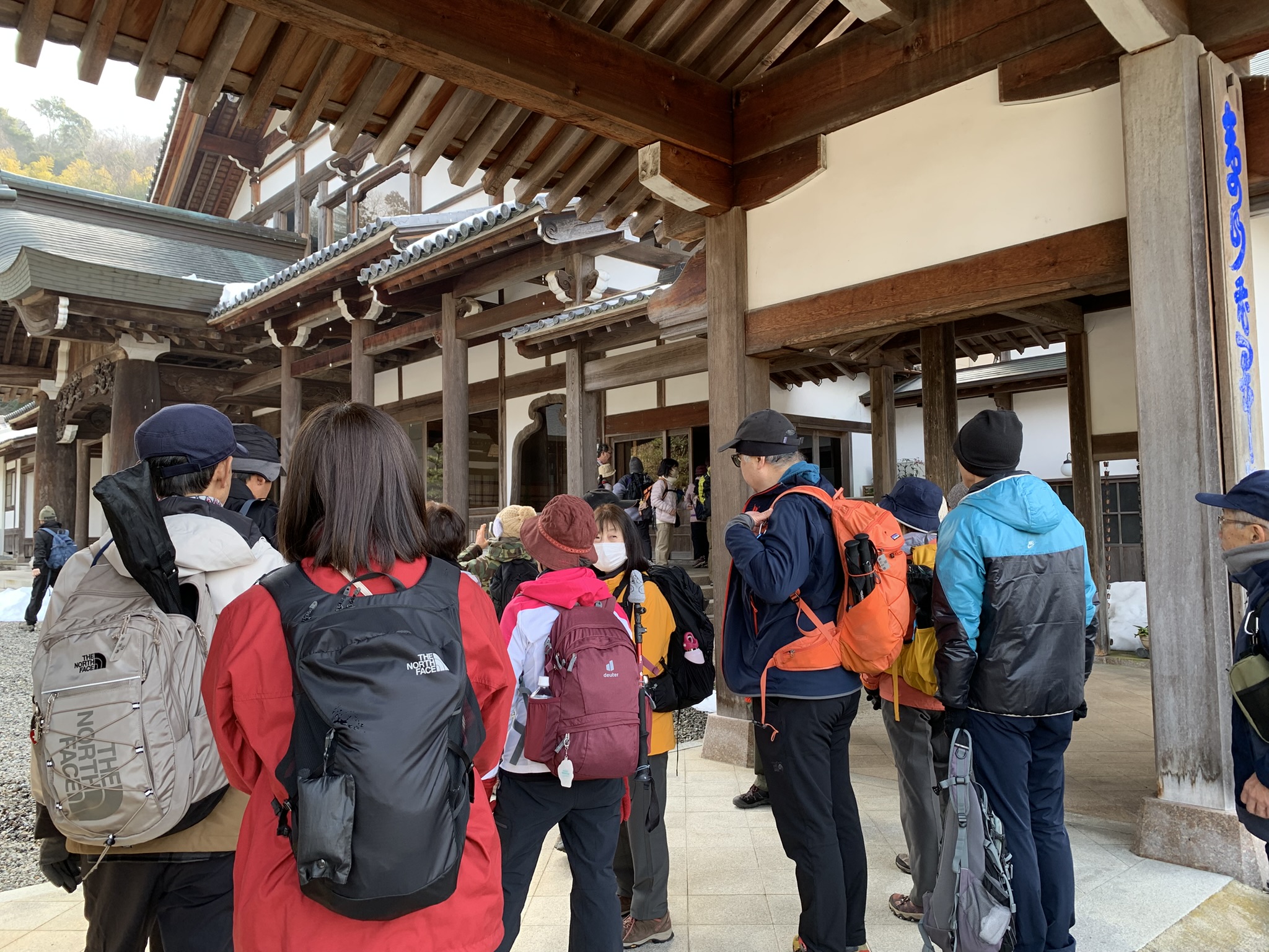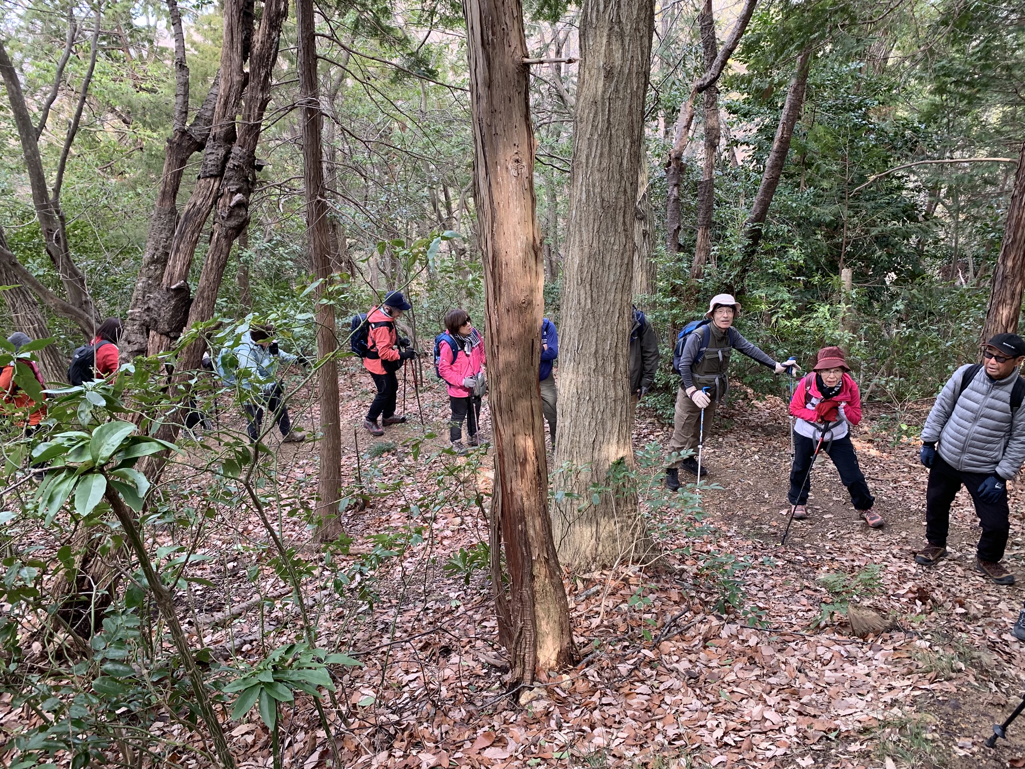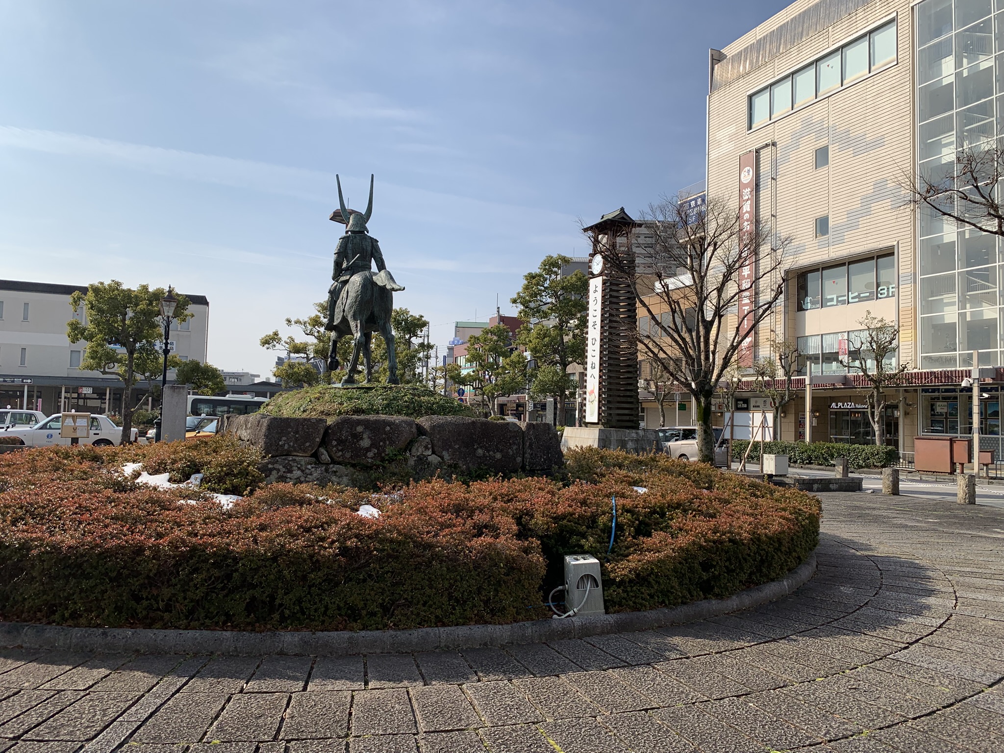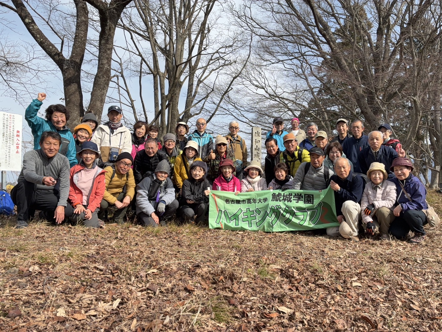 今日のハイキングは彦根市の佐和山です。彦根駅を出るとすぐ前の広場で井伊直政の勇ましい銅像が迎えてくれました。数日間の寒気団が襲来のあと、今日は風がなくポカポカした好天に恵まれ、まさに登山日和です。佐和山は地元の清凉寺が持っているとのことで、寺に寄った際に住職から登山道に狭いところがあるので注意して登れとの言葉をいただきました。