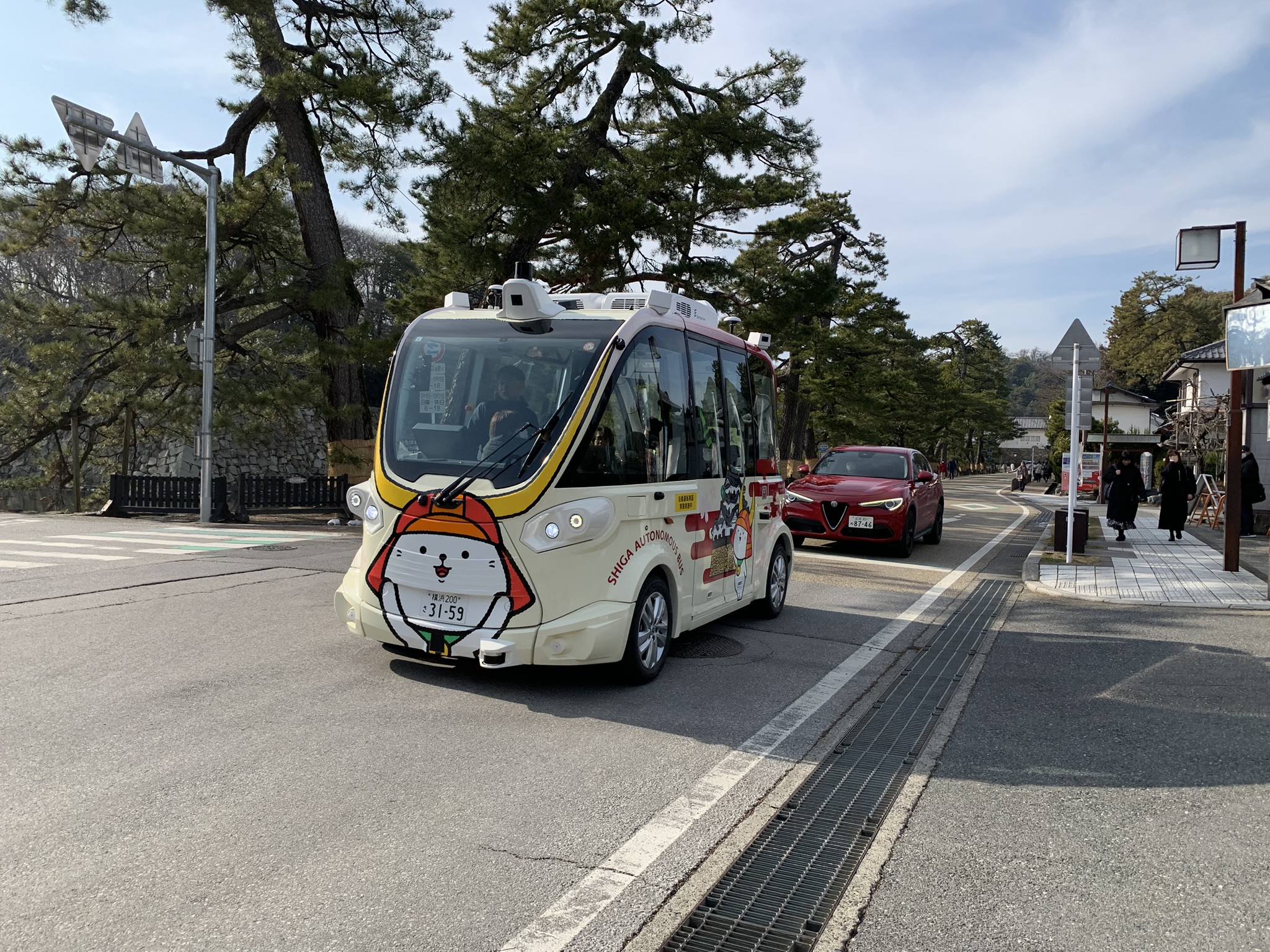 今日の一枚:下山した彦根市内で「ひこにゃん」がデザインされた自動運転EVバスを見かけました。