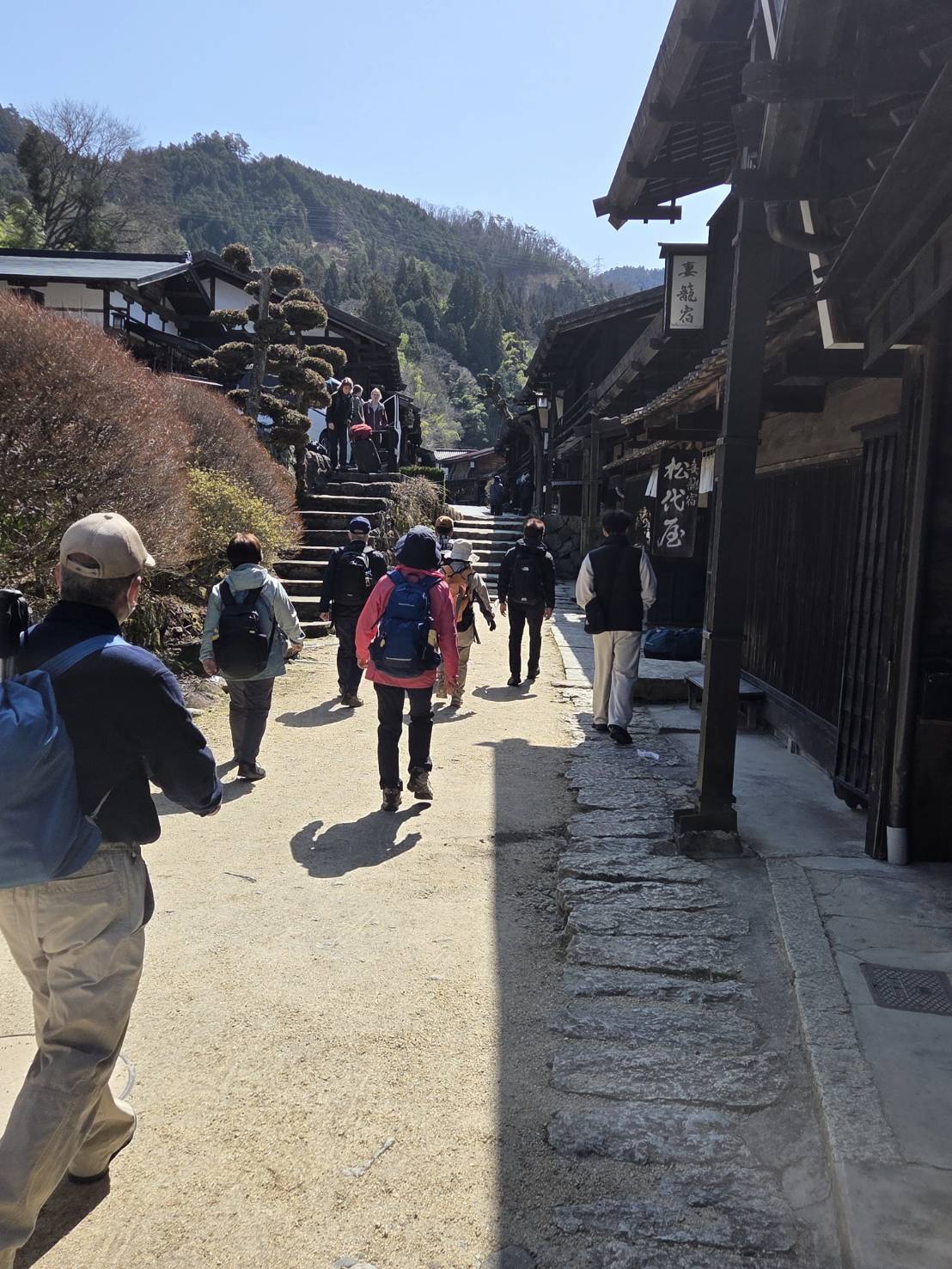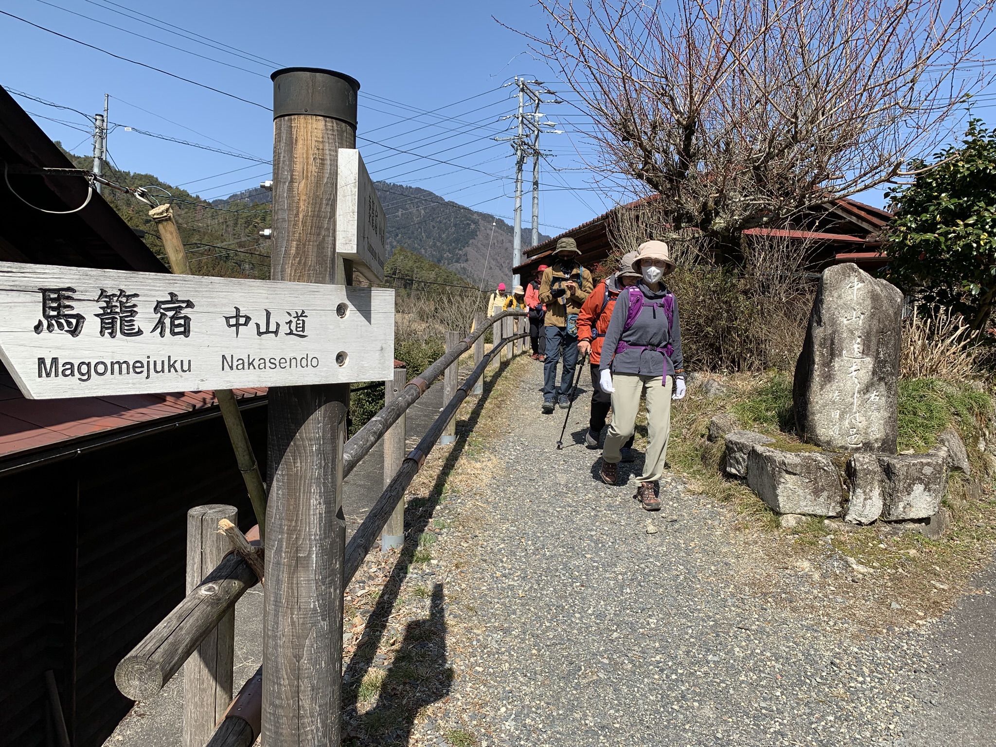 次に、馬籠峠(801m)を越え2時間少々で馬籠宿に到着、馬籠宿は妻籠宿より洗練されていて、より観光地化している様子でした。そして、バスの到着を待ち中津川駅へ、色々な事があった今回のハイキング、皆んな満足の様子で名古屋に向かいました。