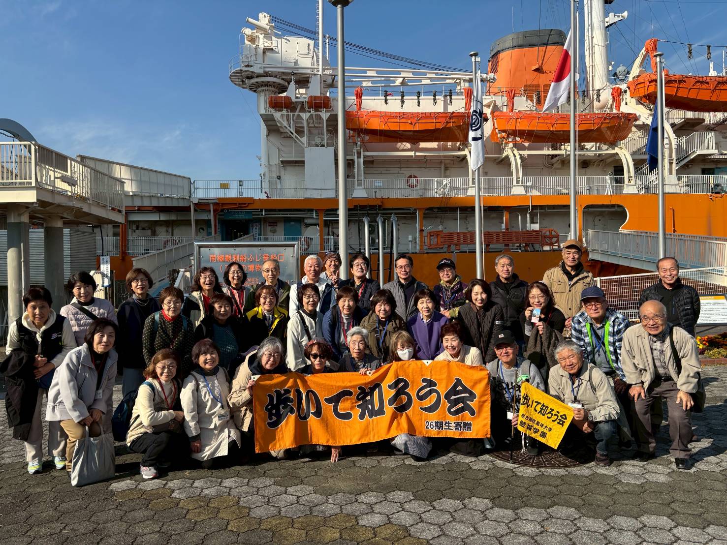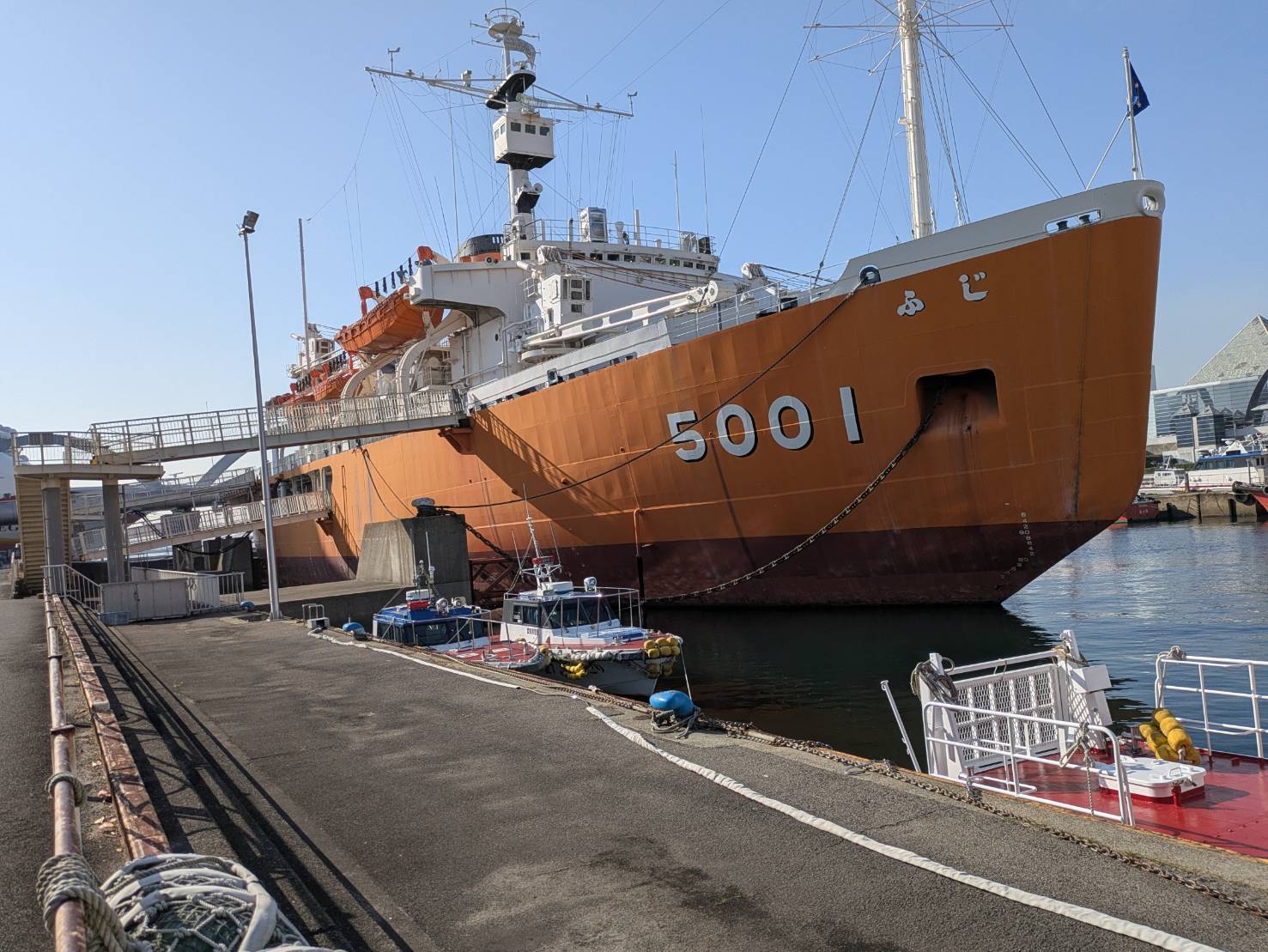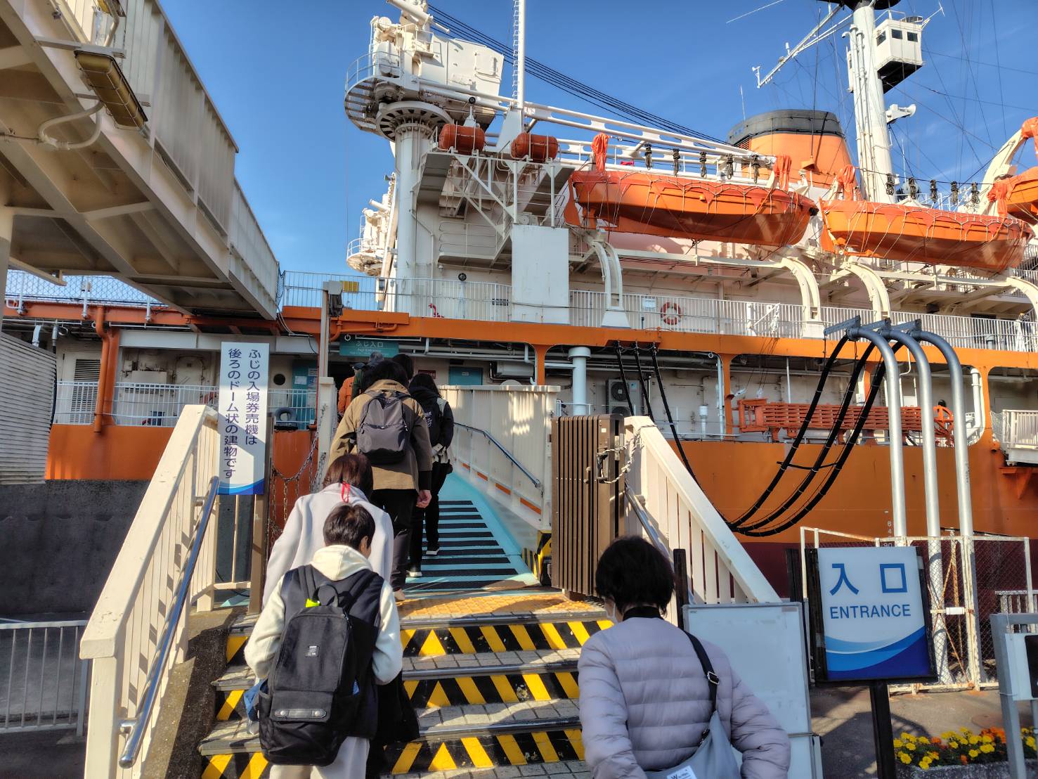 南極観測船ふじは、1955年から18年間活躍した2代目の観測船で、本格的な砕氷船としては日本で最初の船です。全長100メートルの船内を、1時間のガイドツアーで厨房や医務室、乗務員の居室などをじっくりと見学し、南極への旅の疑似体験をすることができました。