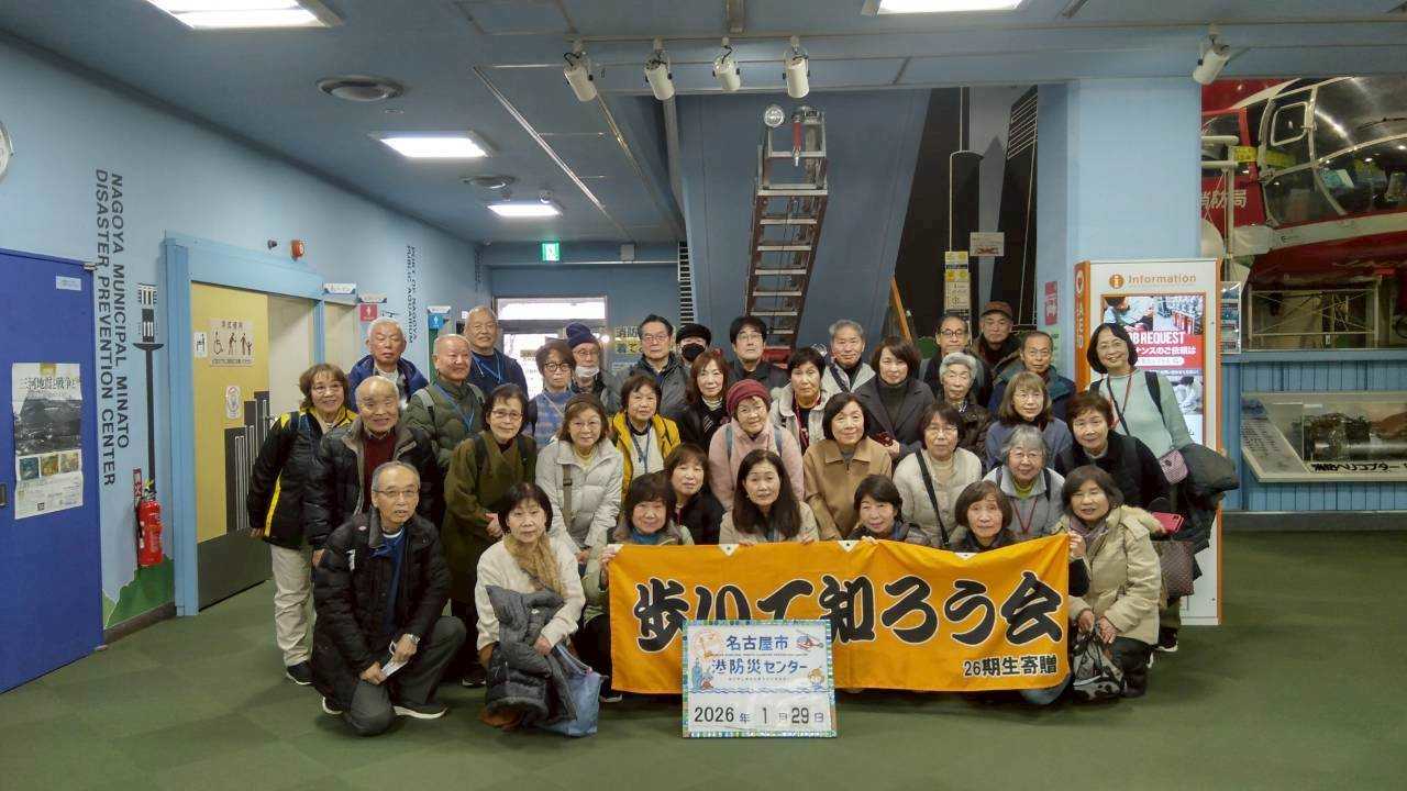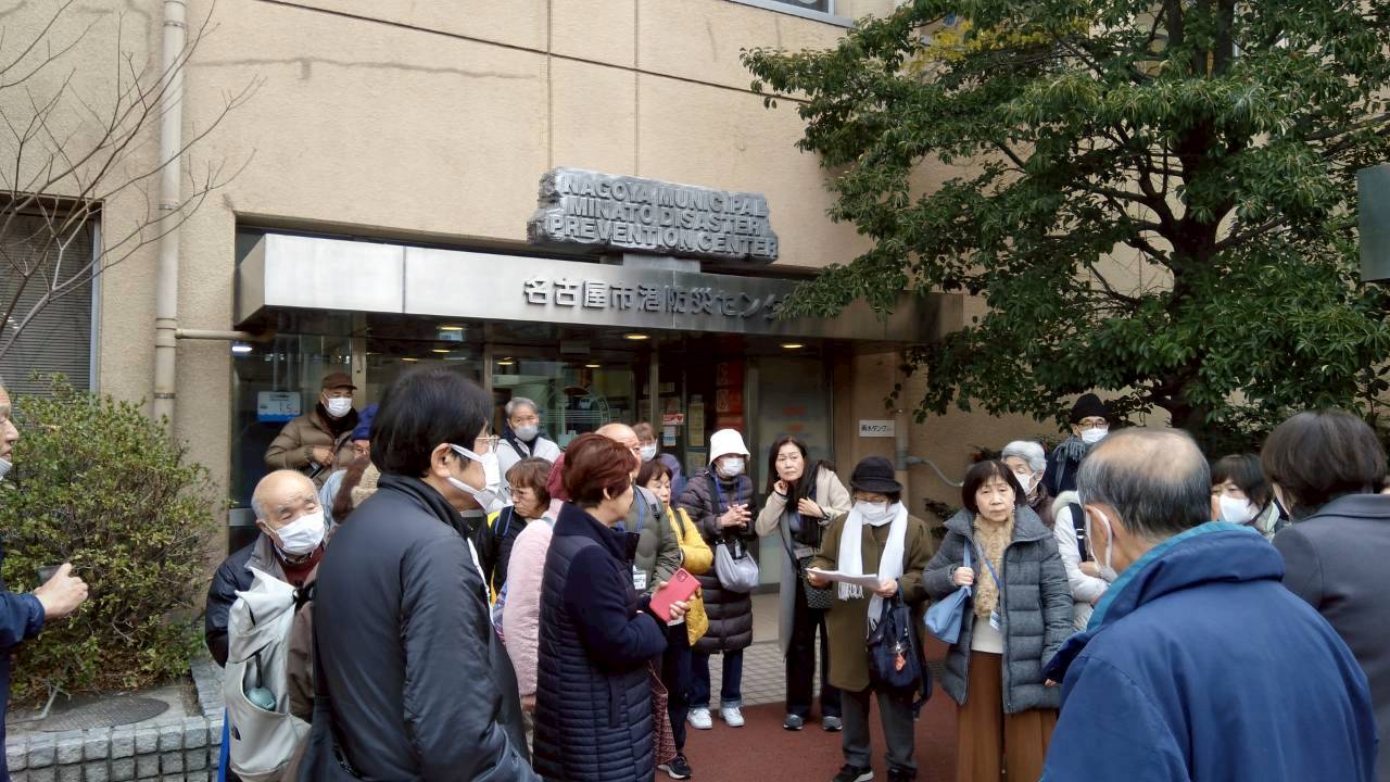 港防災センターにて、いざという時に備えて、我々名古屋市民一人ひとりが 災害の実態を正しく知り、またその時、それにどのように対処するかの方法を知るために、センターの方からお話をお聞きし、またいろいろな展示を見学し、また実際いろいろな災害時の疑似体験を行いました。
