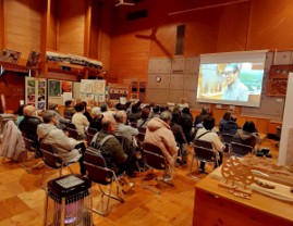 大空間ホールでの林業と水運のネットワークのスライド学習は有意義でした。 まず木曽川から庄内川、堀川へと続く「水の連携」です。木曽の山奥で伐採された木材が、自然の川の力を利用して運ばれ、最終的に堀川を通じて熱田白鳥の地に集まる仕組みは、先人たちの知恵の結晶だと感じました。 展示の歴史的絵巻は、当時の人の活気、川を行く木材の多さ、また熱田の地域が果たした経済的役割が再現され、さらに写真・展示物などから、文字資料だけでは伝えきれない「当時の空気感」がそれらを通じてダイレクトに伝わり、大いに感銘を受けました。