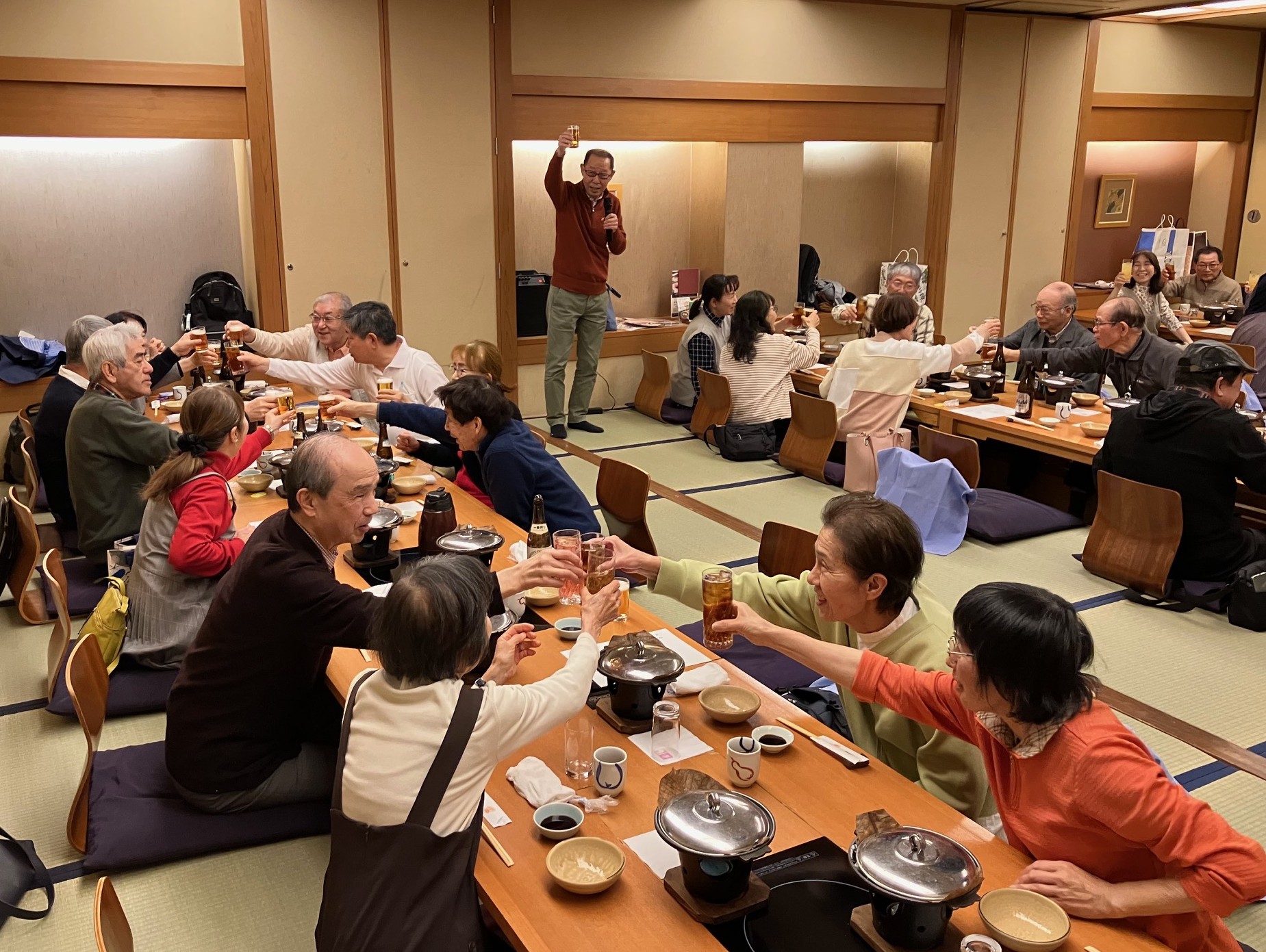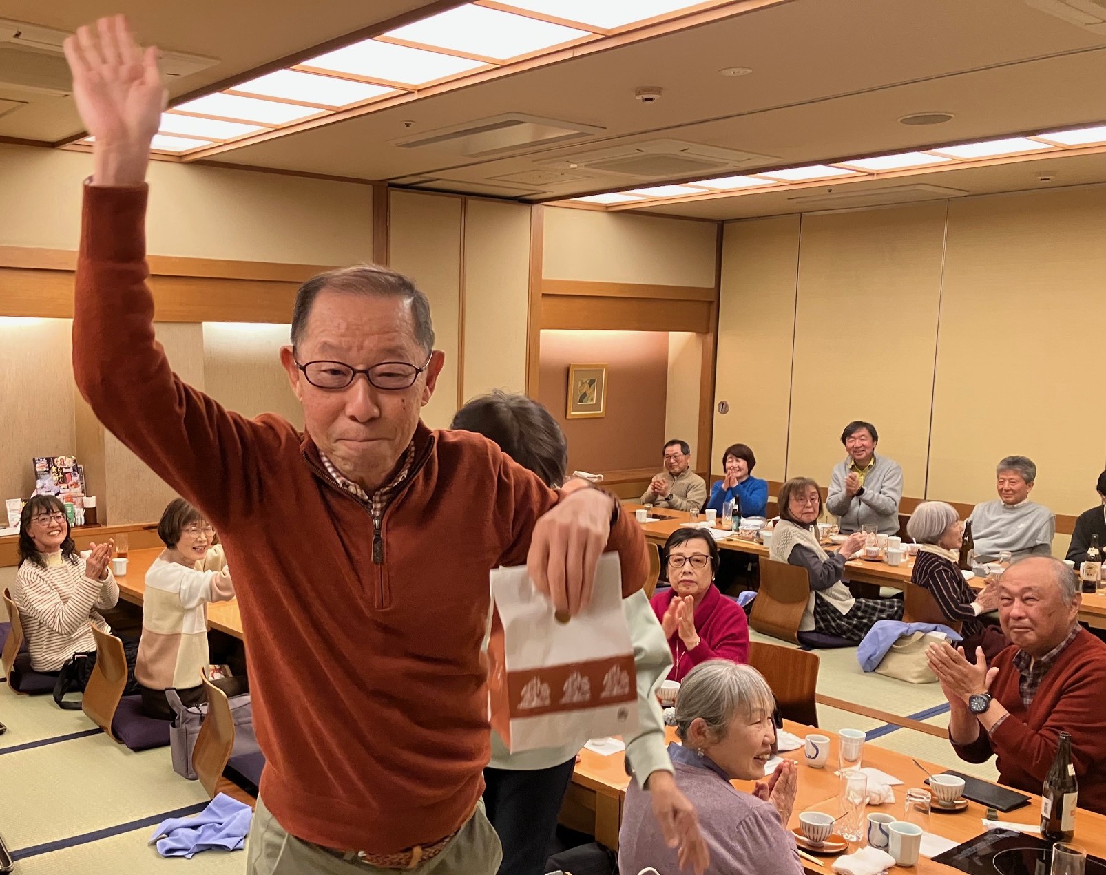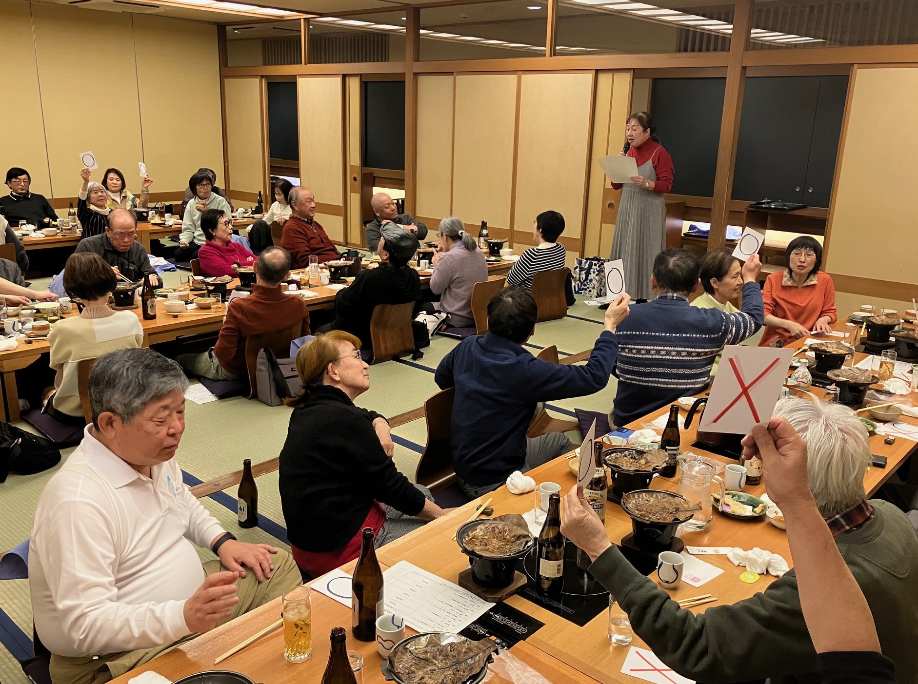 2025年度最後の活動として、定例会を開催しました。39期生代表及び副代表のお言葉に始まり、2025年度活動実績の報告、来年度活動計画の検討、新代表の選出などを行いました。 その後、場所を木曽路錦店に移動し、39期生の功績に対するお疲れ様&40期生の今後の活動に対する頑張ろう会を行いました。 2025年度のウォーキングの人気投票、ジェスチャーゲーム、〇×クイズ、ジャンケン大会などを行って大いに盛り上がり、最後は、新代表の挨拶で締めました。 39期生の皆さま、2年間、本当にお疲れ様でした。